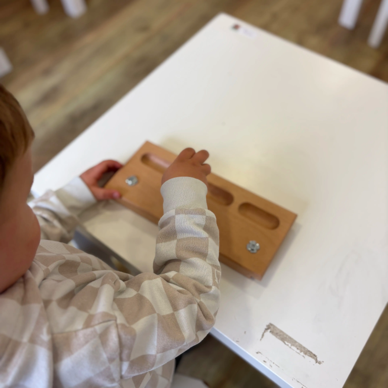 À travers des activités sensorielles, motrices et de vie pratique, l’enfant développe son autonomie, sa confiance en lui et son langage.