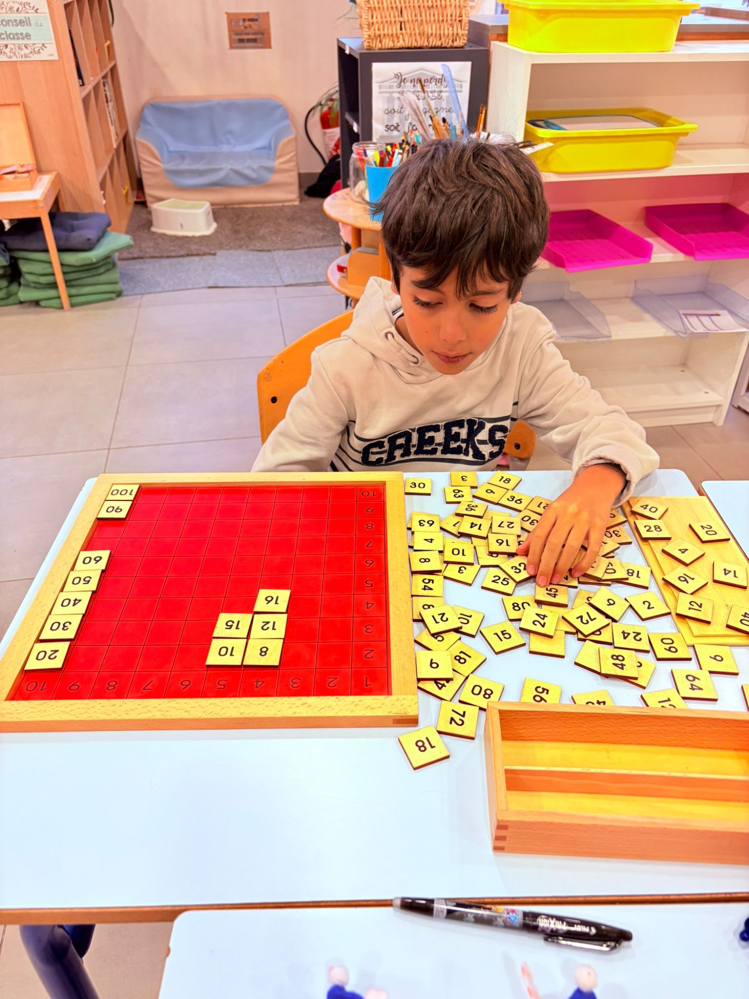 L’enfant est libre de choisir l’activité qui le motive, il est alors plus investi, attentif et concentré, ce qui favorise l’apprentissage. Il choisit également s’il veut s’assoir à une table ou s’il préfère travailler sur un tapis au sol. La liberté de mouvement et la libre circulation dans la classe (tant que le mouvement reste calme et ordonné) sont fondamentales. En effet, le cerveau apprend mieux quand le corps n’est pas figé.