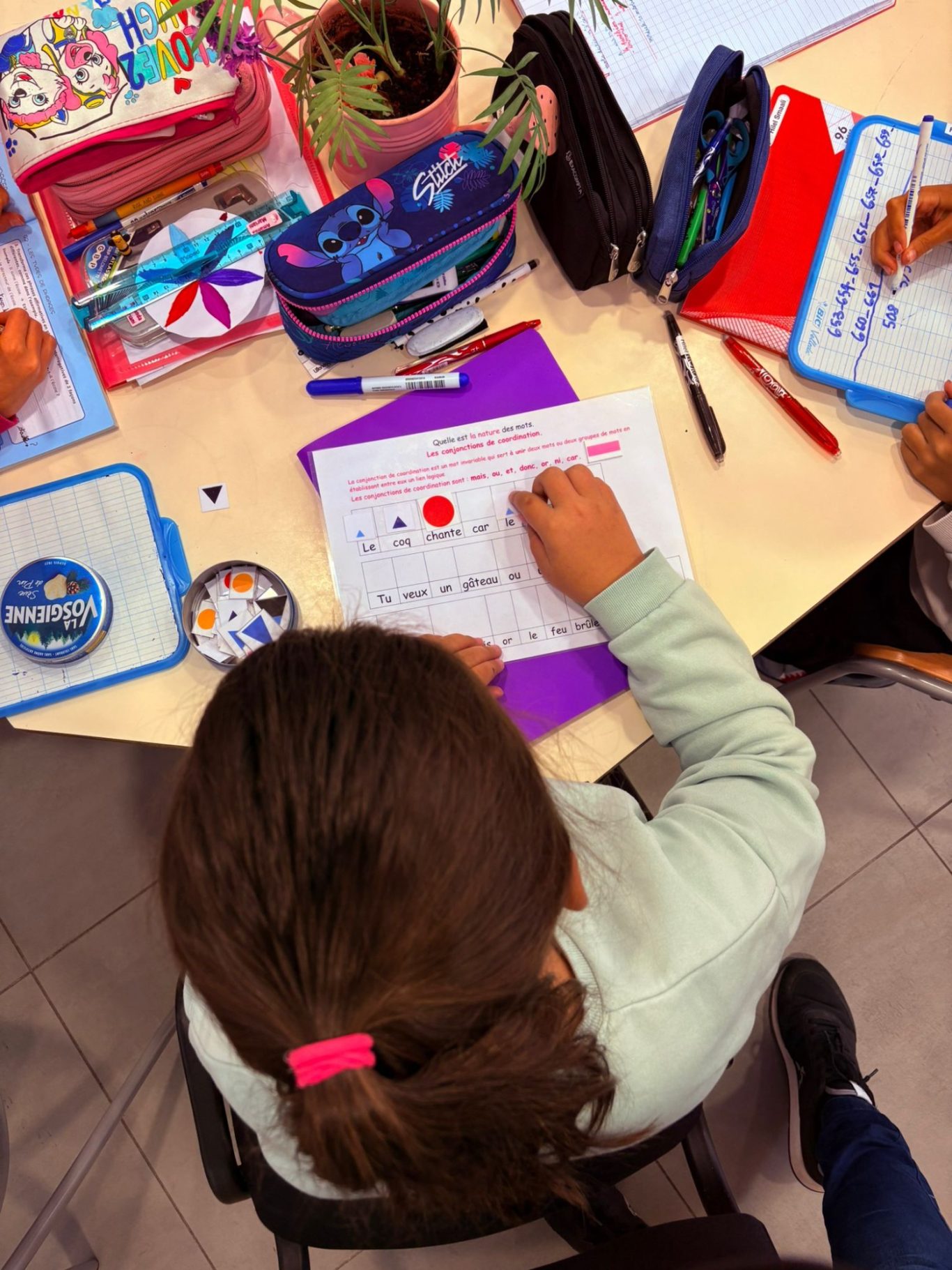 Les plus jeunes sont stimulés et s’imprègnent de tout ce que font les plus âgés. Ils peuvent aussi se sentir rassurés et sécurisés dans ce nouvel environnement de classe en observant les plus grands y circuler, y travailler, y vivre.