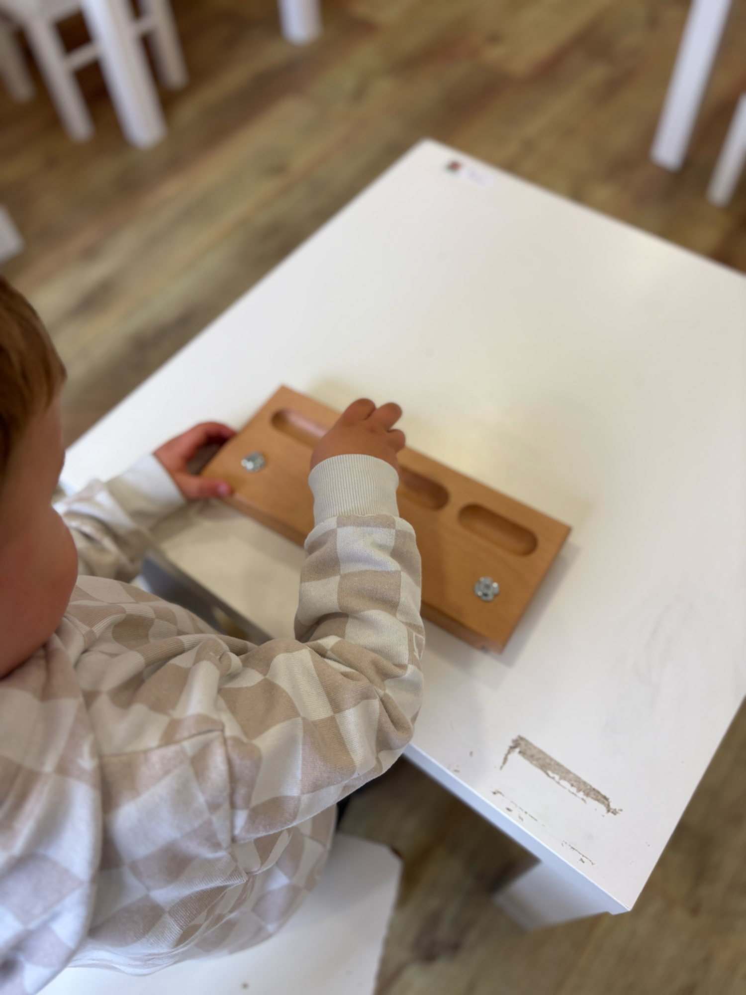 Enfin, le matériel est porteur du contrôle de l’erreur qui est constitutive de l’apprentissage. Ce retour d’information immédiat amène l’enfant à réajuster ses stratégies et à répéter l’activité, ce qui renforce la consolidation et l’automatisation de l’apprentissage. Ainsi, l’erreur n’est pas perçue comme un échec mais comme la possibilité de se perfectionner.